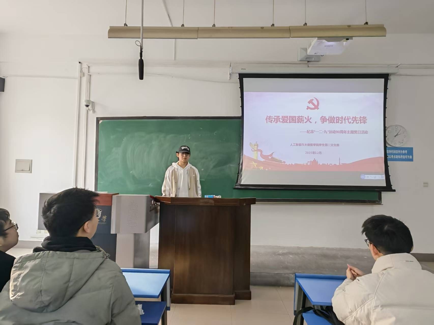 为传承一二▪九运动红色基因,厚植青年学子爱国情怀,12月9日,人工智能与大数据学院学生第三党支部开展纪念一二▪九运动主题党日活动。支部学生党员、入党积极分子参与本次活动,活动由党支部书记唐金杰主持。