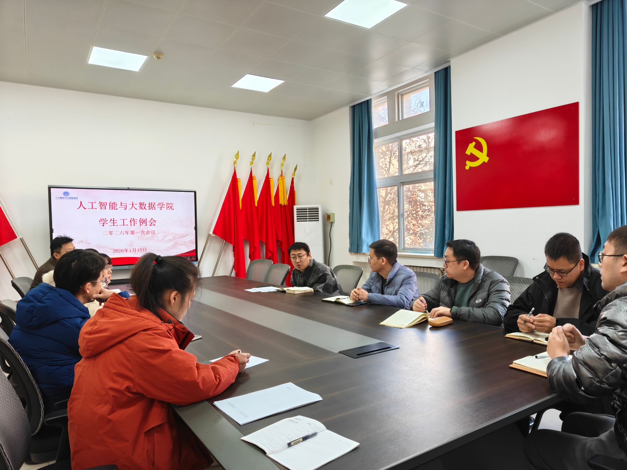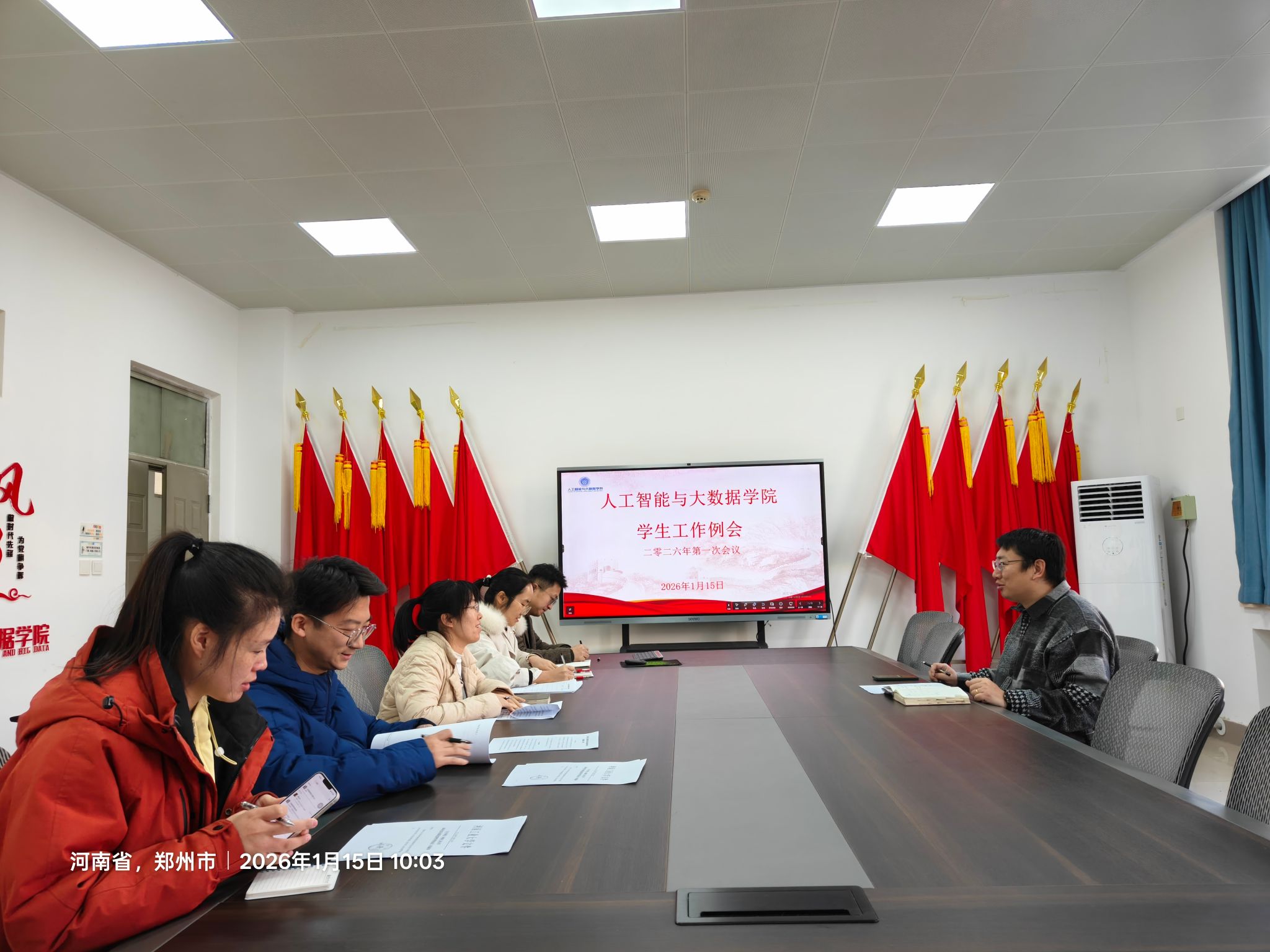 2026年1月15日,人工智能与大数据学院在惟学楼6371会议室召开了2026年第一次学生工作例会。学院党委副书记赵志洋、全体辅导员参加本次会议。
