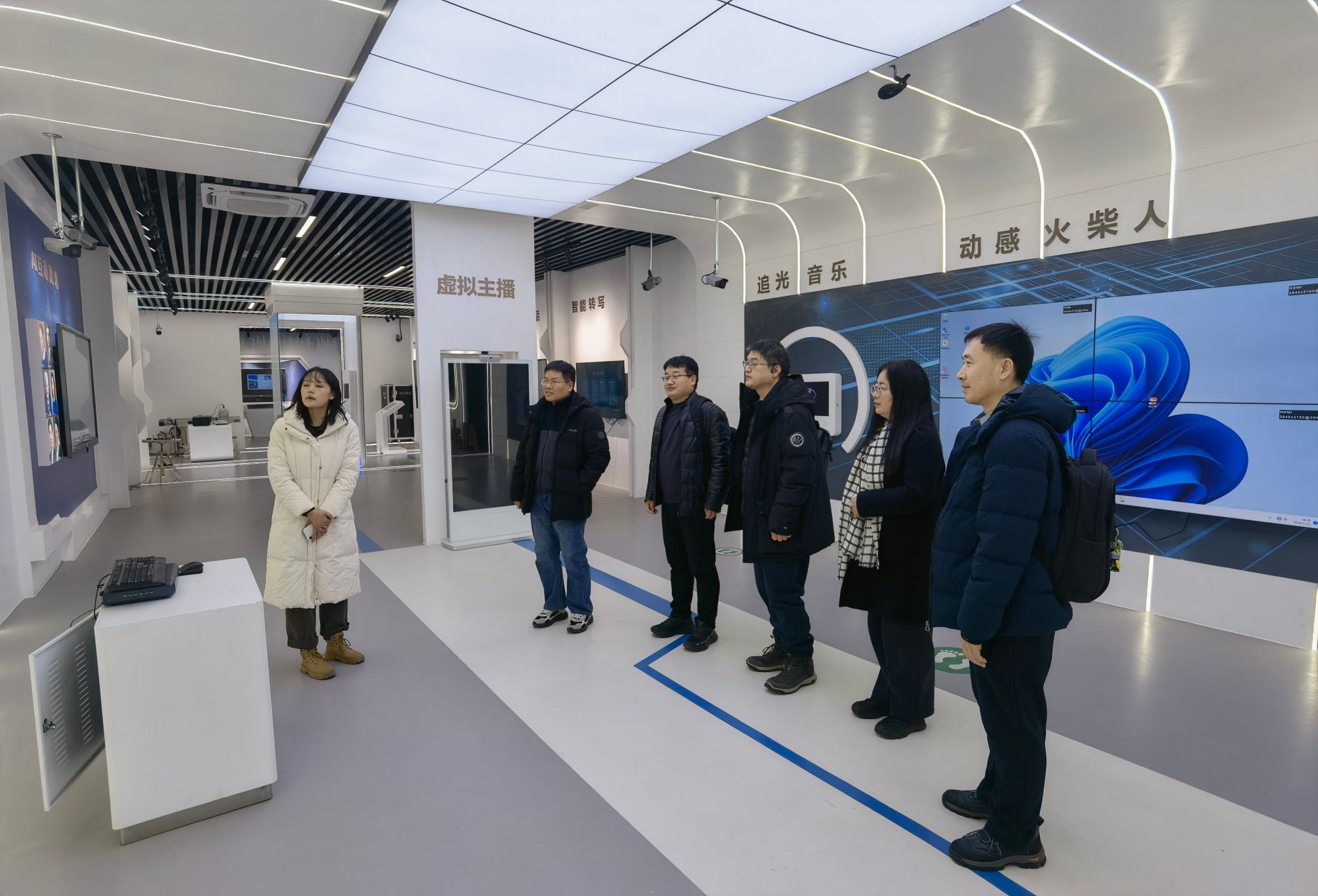 座谈会后,在我院相关负责人的陪同下,调研团队先后参观了学院实验中心、超算中心和河南工业大学人工智能认知厅。科大讯飞代表王丛丛担任讲解员,通过生动详实的讲解和现场演示,详细介绍了各平台的建设理念、硬件设施、功能定位及在教学科研、人才培养中的应用成效。