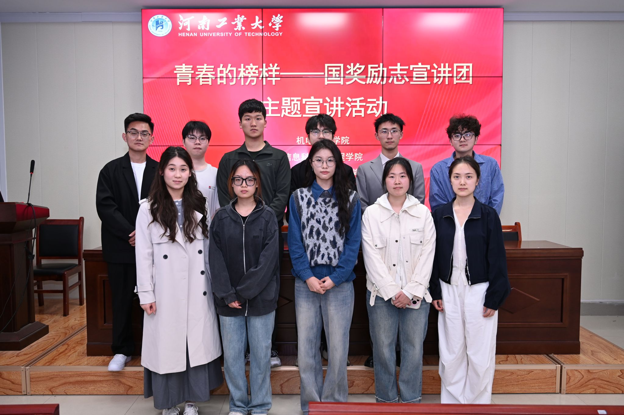 为充分发挥优秀学子的示范引领作用,持续深化资助育人实效。2026年4月13日晚,人工智能与大数据学院、机电工程学院、信息科学与工程学院在惟明楼7224捷赛厅会议室,联合举办“青春的榜样——国奖励志宣讲团主题宣讲活动”。机电工程学院党委副书记张东霞、人工智能与大数据学院党委副书记赵志洋、相关学院资助工作负责老师、宣讲团成员和2024级学生代表参加宣讲会。活动由机电工程学院辅导员王子荟主持。