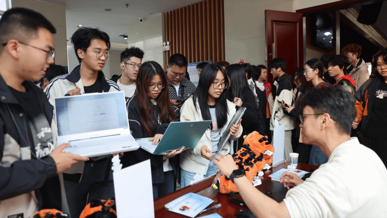 随后的活动中,中国电子企业协会企业数字化服务分会副秘书长、工信部 AIGC 应用专家、活动特聘讲师刘涛老师带来了“新一代智能工具赋能大学生就业力提升”主题公益讲座。他结合当前就业市场形势与AI技术发展趋势,详细讲解了智能工具在简历优化、面试准备、职场办公等求职就业全流程中的应用方法,通过实操案例拆解,让同学们直观感受AI工具的实用价值。同时,外场AI智能体验日活动同步开展,工作人员现场开展AI工具一对一功能体验教学,帮助同学们快速掌握AI工具实操技巧、熟悉各类应用场景。